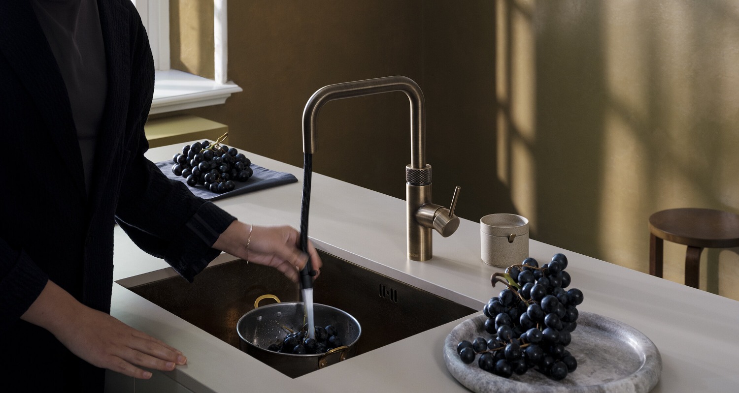 Making its KBB debut, Flex 2.0 introduces a contemporary square design with a pull‑out hose, a first for a square boiling‑water tap. The launch also includes a new patinated brass finish, now one of Quooker’s fastest‑growing finish choices, offering a rich, living surface that develops character over time.