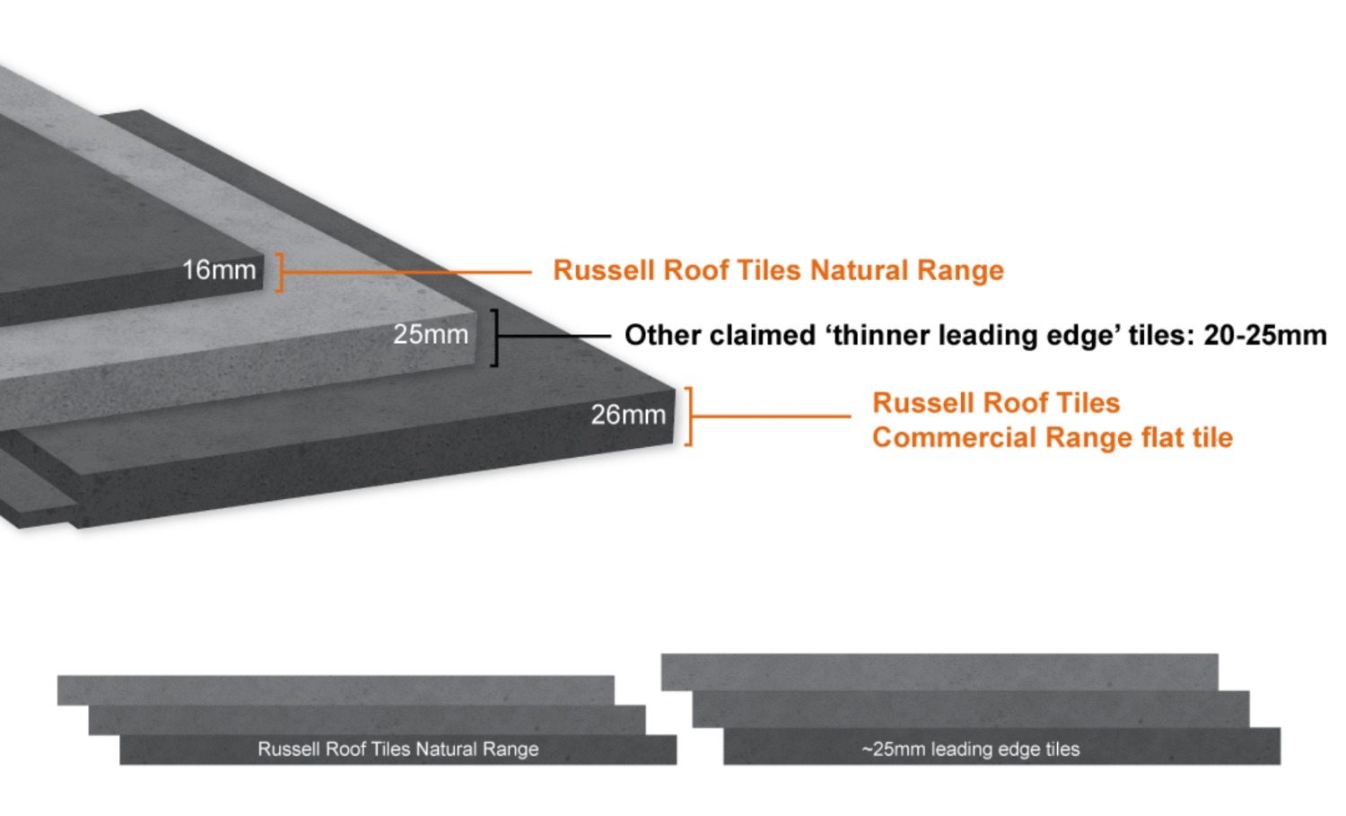 Russell Roof Tiles says that as the market increasingly references “Thinner” or “Thin leading edge” it is more important than ever for specifiers to understand the exact dimensions and design features of a tile – rather than relying on terminology alone.